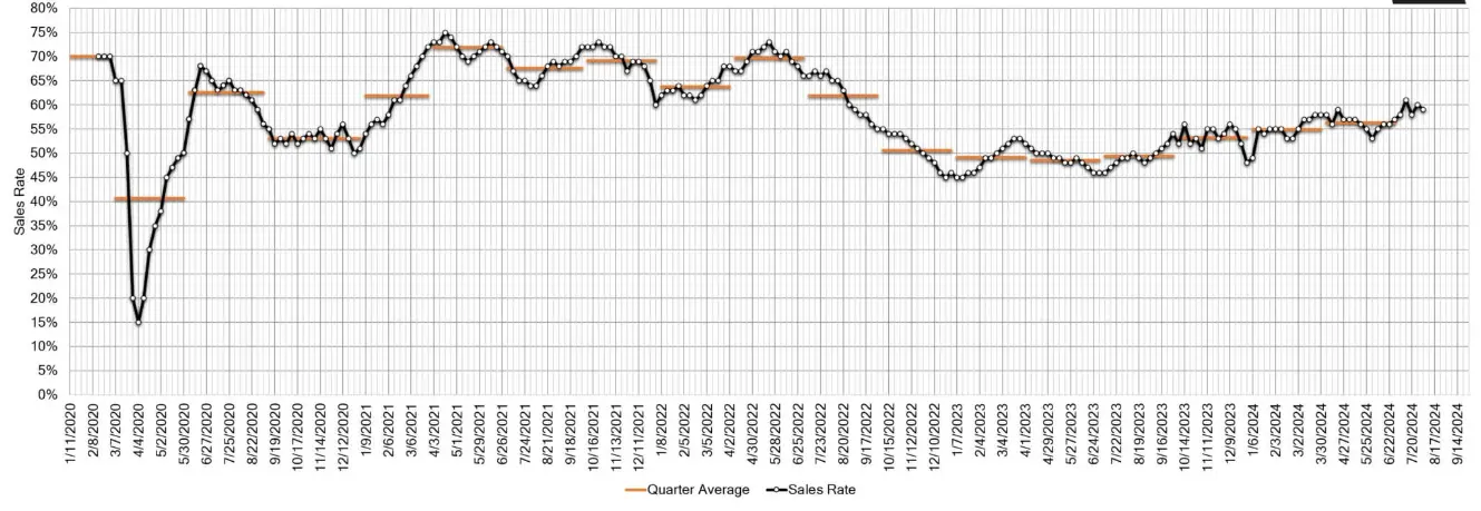 Estimated Average Weekly Sales Rate at US Auctions August 07 2024By Car Appraiser / August 7, 2024 Estimated Average Weekly Sales Rate at US Auctions August 07 2024